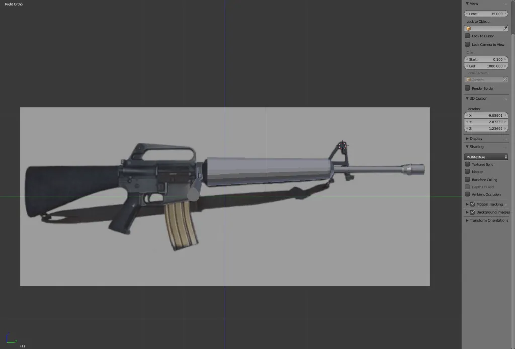 The story is set in 1969 and using a quick Google search showed me that the M16A1 was the rifle of choice for US Army service men during that era of time. I used this reference image: