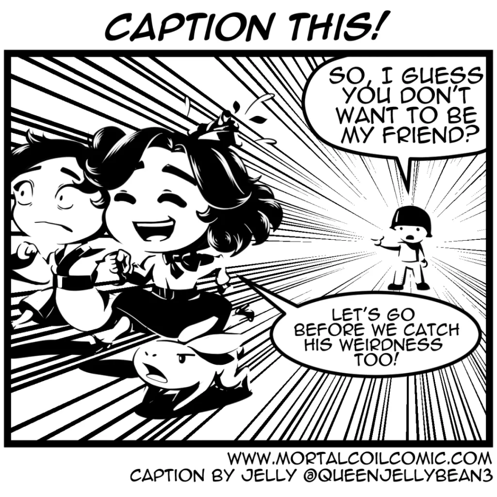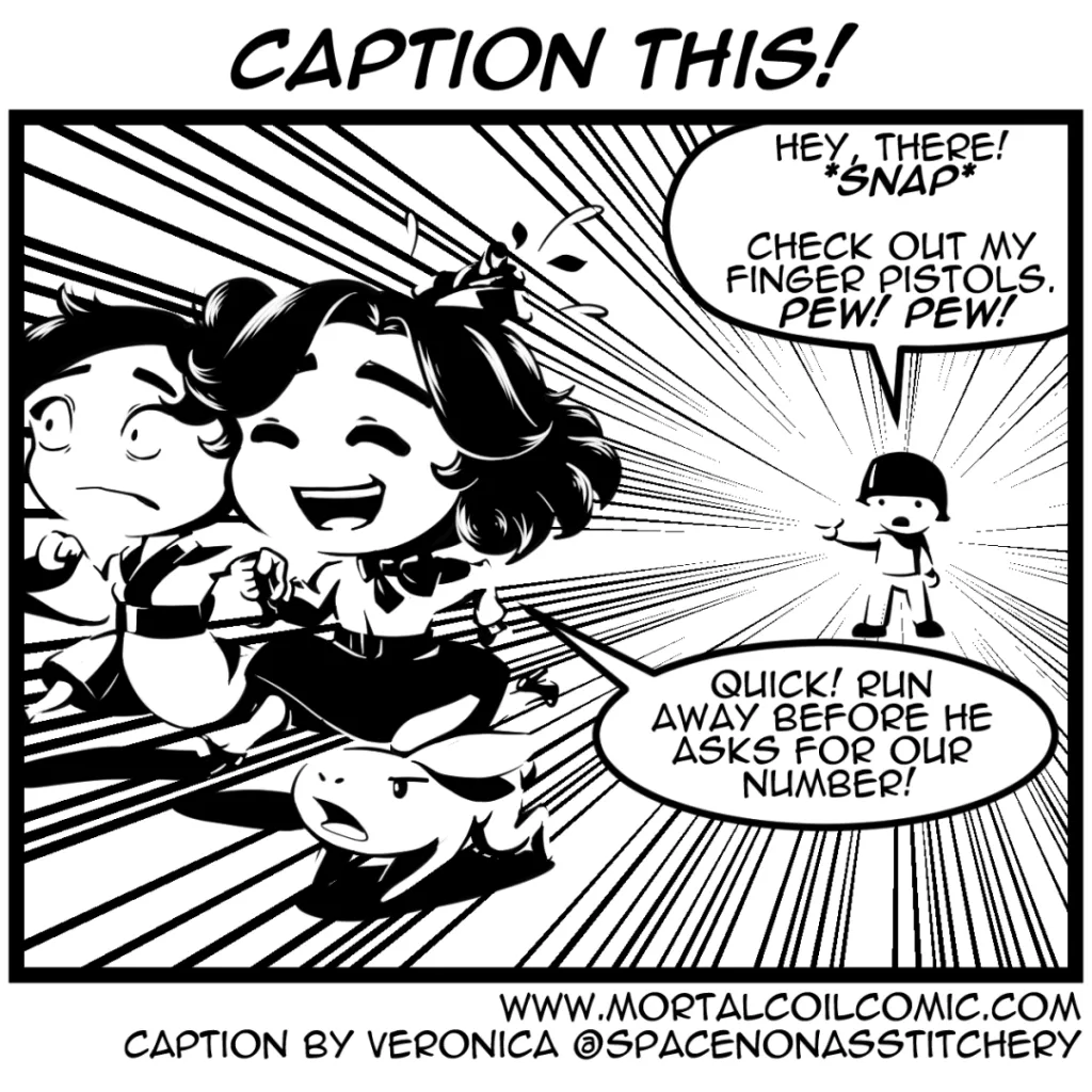 Write your entries in the comments below and I’ll turn it into a comic. I’ll also give your website a shout out (link me to the thing you want me to call out). I’ll be posting this onto my Instagram, Twitter, and Facebook later on if you want to play there. Links are below!
